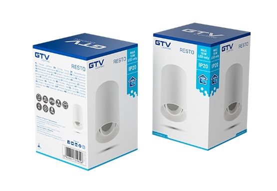 Spot lamp housing RESTO, white, GU10, Euro certificate, IP20, Ø80mm., h125mm., without holder, warranty 3 years, RST80125OK1-10, GTV-319556