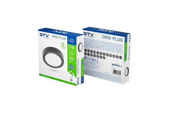 ჭერის სანათი დიოდური ORIS PLUS, 13 w, შავი, 4000K. ნეიტ. ნათება, 1020lm, IP20, ø170მმ, h32მმ, გარანტია 3წ., LD-ORN13W-NBP-10, GTV-388279