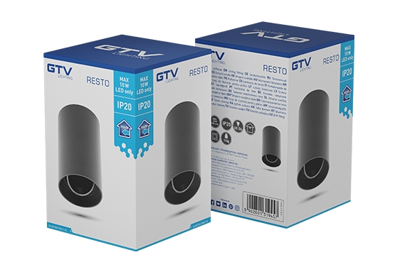 წერტილოვანი სანათის კორპუსი RESTO, შავი, GU10, ევროსერთიფიკატი, IP20, Ø80მმ., h125mm., პატრონის გარეშე,გარანტია 3 წელი, OS-RST80125OK1-00, GTV-319457